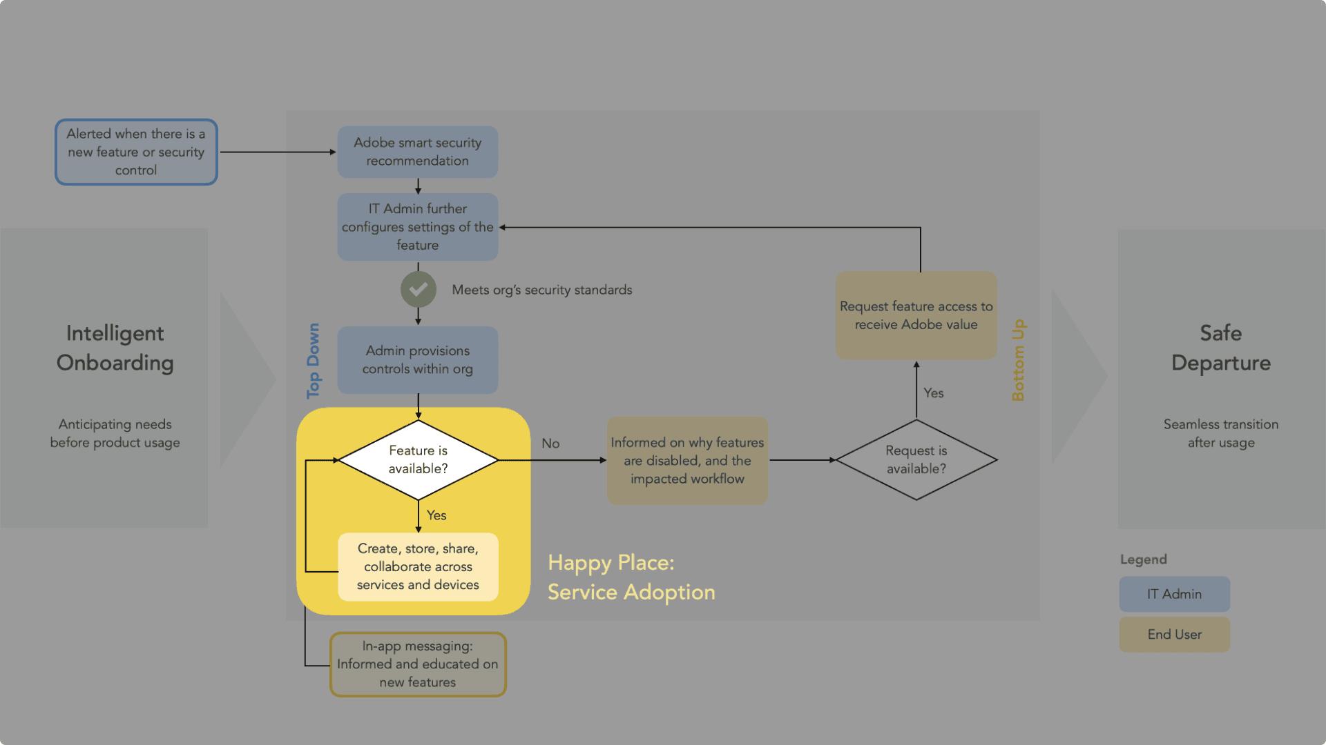 Painted the big picture flow of admins enabling new features and/or end-users requesting access to these features.
