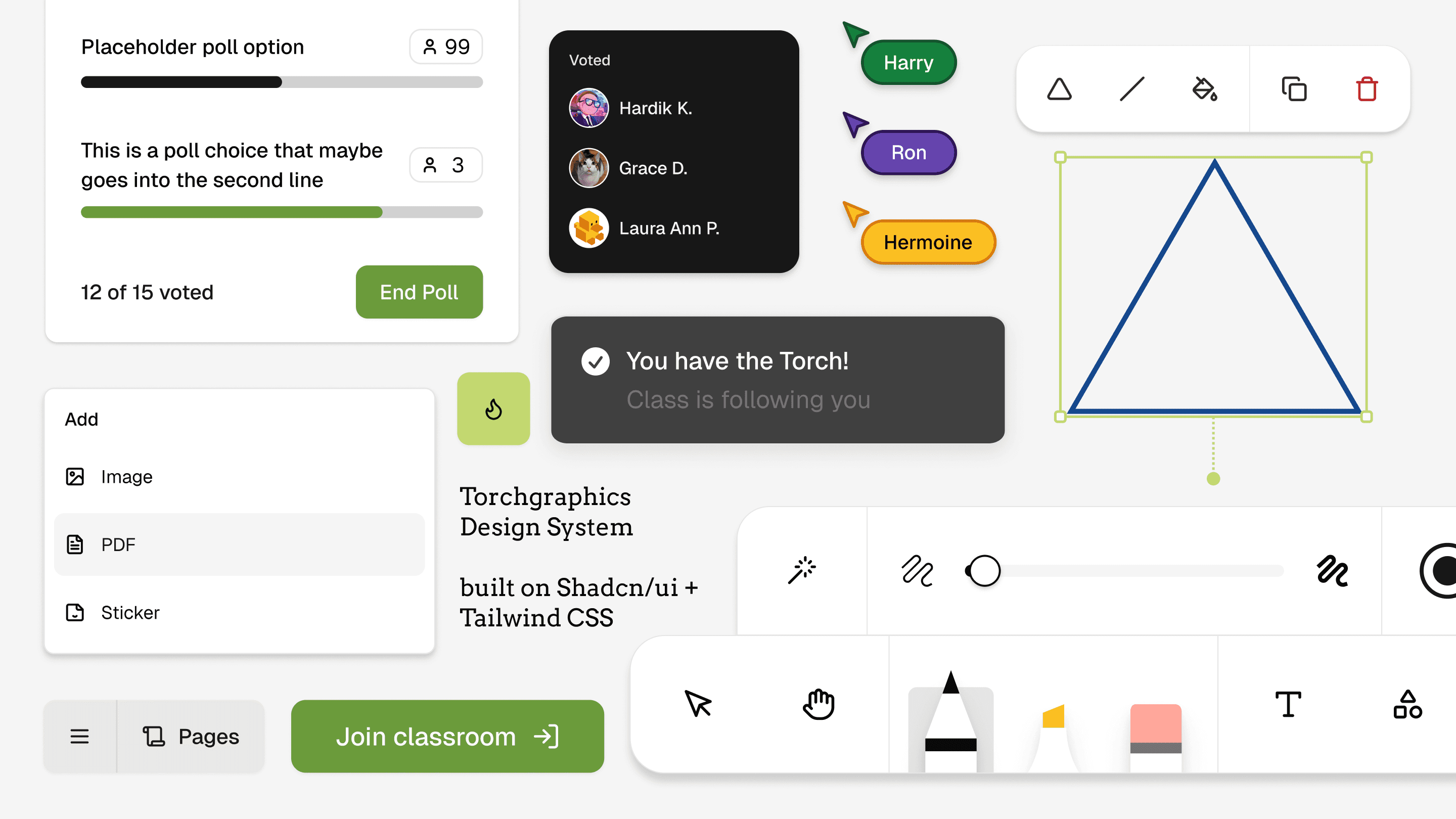I led design on Torchboard — AoPS's own interactive, multiplayer classroom whiteboard — from 0 to 1 over a 1.5-year roadmap.